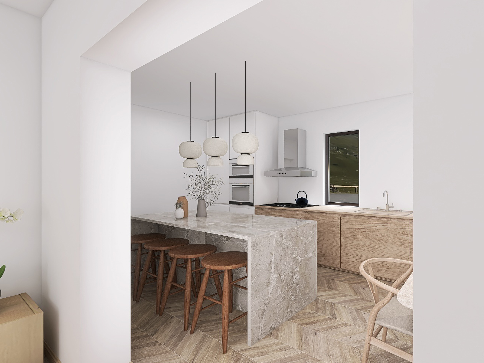 Una casa in cui eccedere e allo stesso tempo rimanere calmi e rilassati. La stanza d’ingresso è un salotto gigante in cui intorno al divano angolare si articolano sedute di ogni genere per momento di grande convivialità. Un muro portante che non possiamo abbatte ci ha lasciato i due spazi divisi ma comunicanti, in un continuum di forme e stile. Così Da qui si inizia ad intravedere la zona pranzo in cui un monoblocco un monoblocco in legno di rovere che da cucina diventa madia e crea continuità tra tutte le funzioni della stanza. Poi la camera da letto che continua lo stile minimale, rustico e wabisabi della zona giorno, Il setto a centro stanza da la possibilità di creare due zone in un solo ambiente. La zona dedicata al letto, che così facendo si trova al centro e diventa il fulcro del luogo; e la zona dedicata al vestirsi e spogliarsi, dietro una quinta, con la giusta privacy. Il colore del setto murario ricalca quello dell’armadio per creare un effetto ottico di doppia profondità. E qui niente comó e tv per evitare il superfluo. Ed infine il bagno in cui il cliente ha dato libero sfogo alle sue fantasie. Così abbiamo creato un ambiente completamente immerso nell’amazzonite verde.