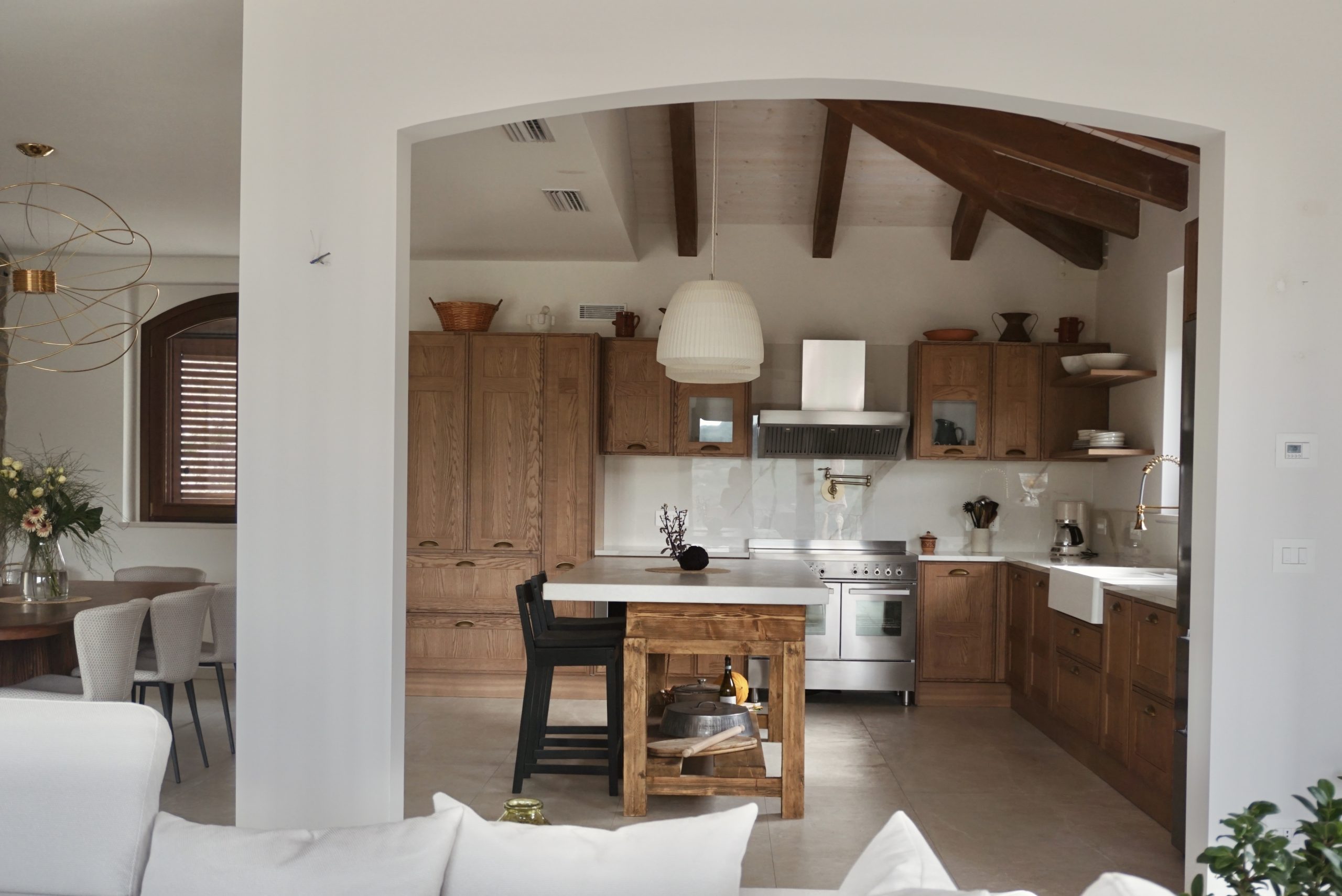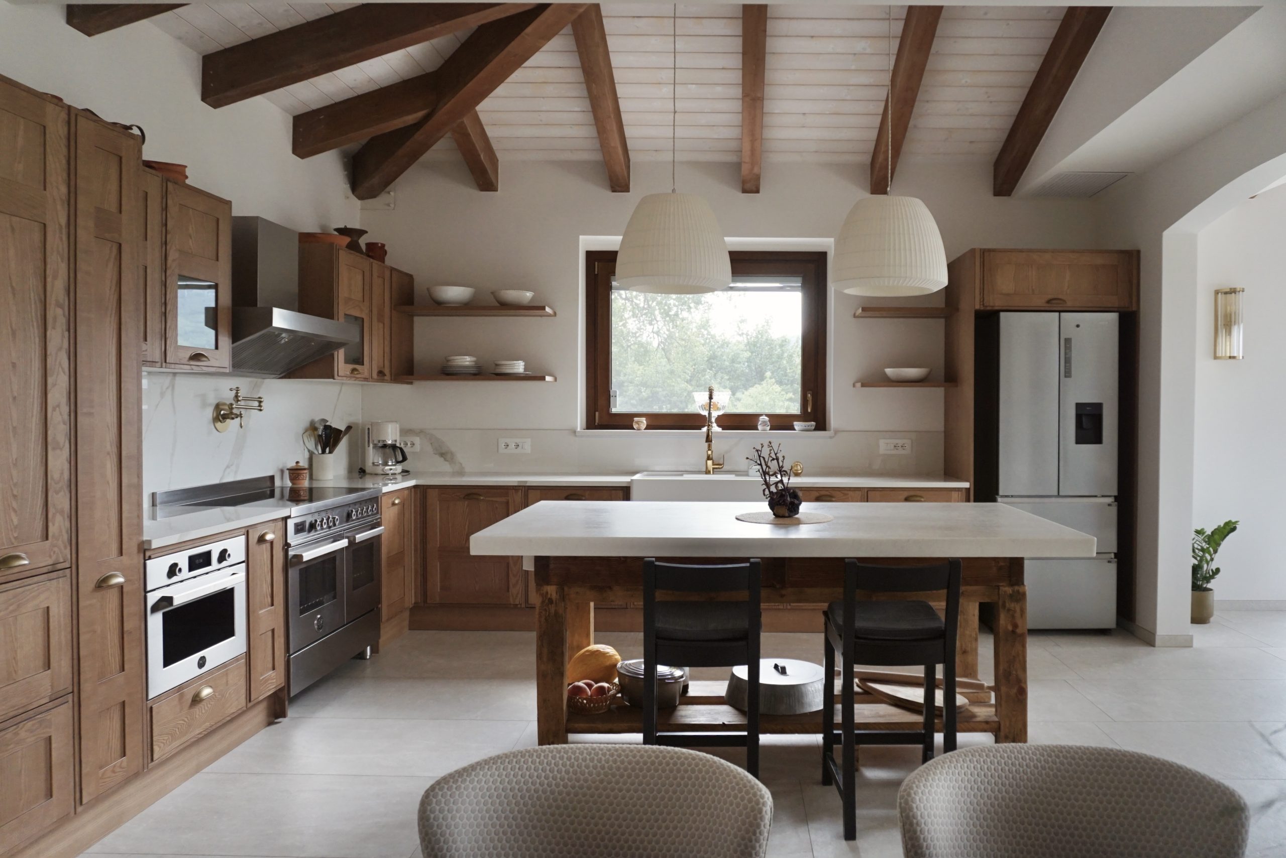 Gli interni riflettono lo spirito dei committenti, che amano definirli mix&match: un incontro tra minimalismo e richiami all’Italia degli anni Cinquanta, intrecciati con suggestioni rustiche e un accento americano. Un linguaggio ibrido che unisce leggerezza e calore, rigore e memoria, sperimentazione e tradizione.