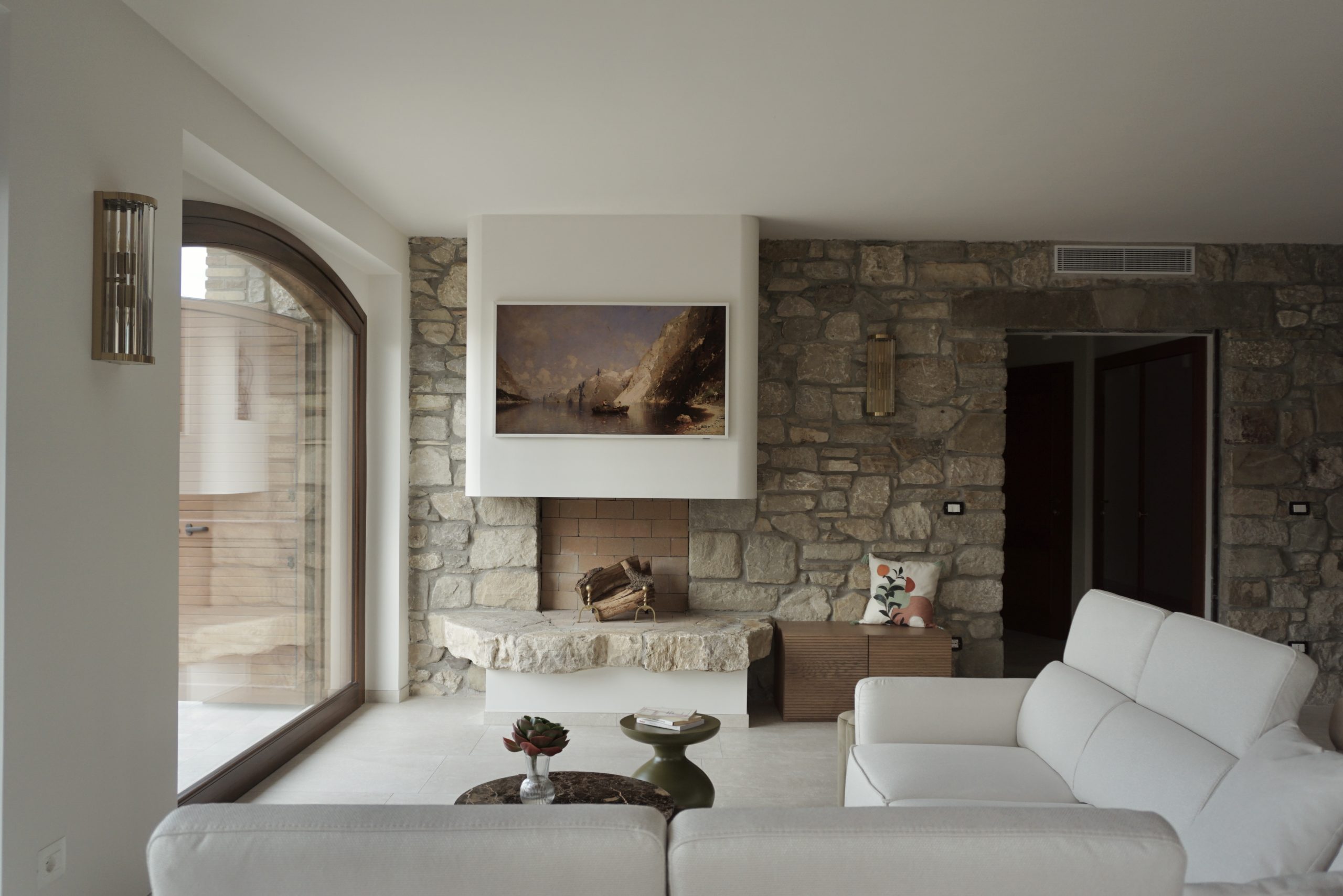 A completare gli ambienti, opere d’arte e design: i lampadari di Axo Light e i lavori su commissione del pittore e scultore Vanni Macchiagodena, che arricchiscono la villa di una dimensione ancora più personale e unica, intrecciando architettura, arte e paesaggio in un’unica narrazione.