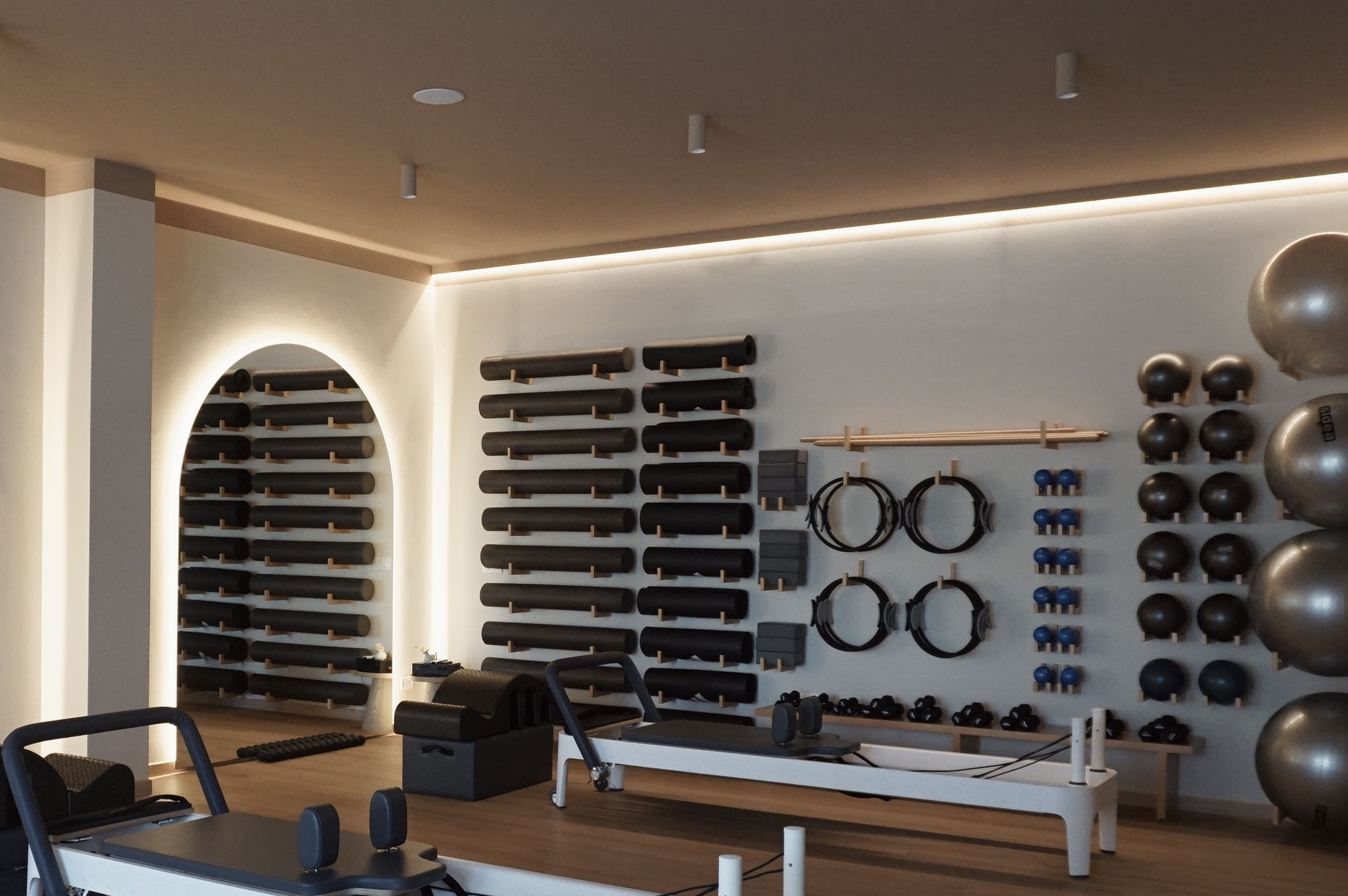 Questo progetto è stato per me un vero onore: dare forma al sogno di una ragazza che ha deciso di realizzarlo insieme a me. Fin dalle prime chiacchierate era chiaro che lo spazio doveva trasmettere calma e concentrazione, ma anche calore e accoglienza. L’idea era quella di creare un ambiente che invogliasse al movimento consapevole e allo stesso tempo rappresentasse un rifugio morbido, sospeso dal ritmo frenetico dell’esterno.